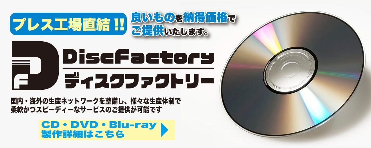CD・DVDプレスを手掛けるディスクファクトリーは、プレス工場に直結しているため、高品質な製品を低価格(税込)で提供しています。CD・DVD制作全般に対応していますので、ぜひご相談ください。
